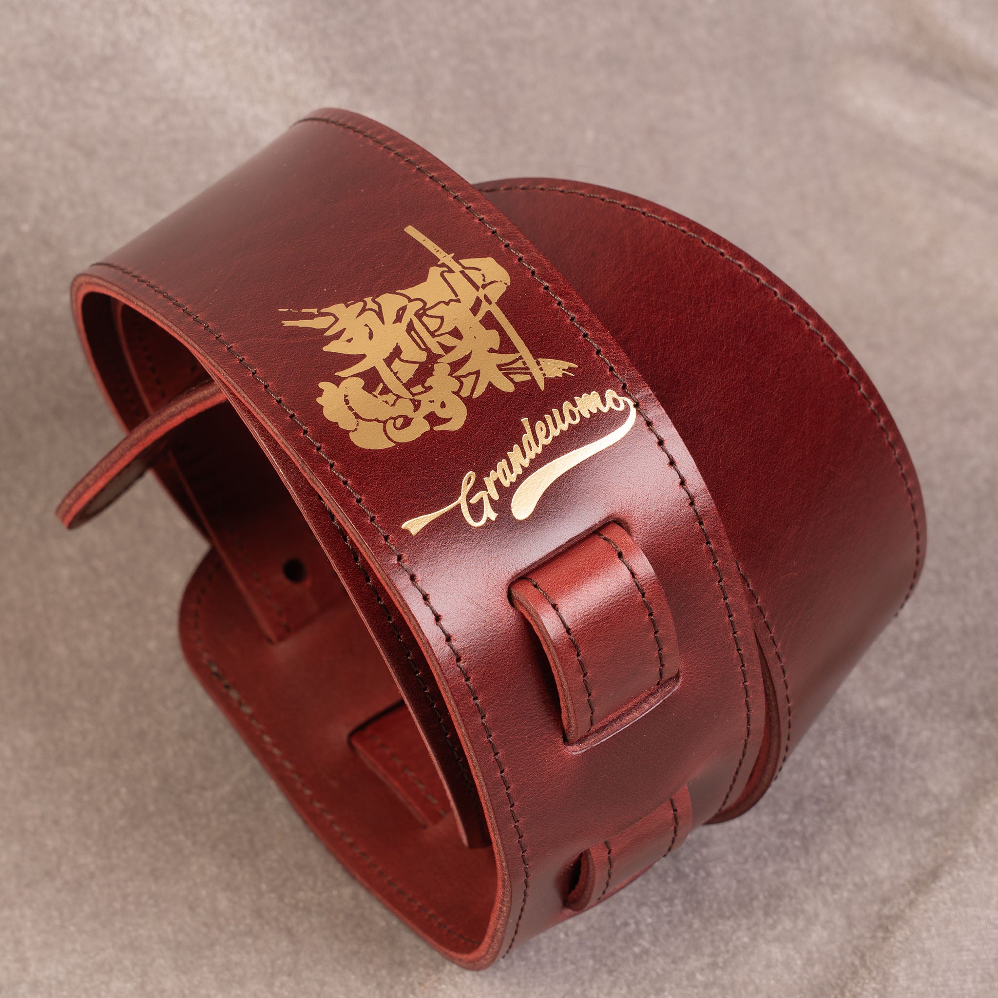 ギターをこよなく愛する革職人による「Grande uomo」より、斬新れこーずのロゴがあしらわれたイタリアンレザーストラップが登場!