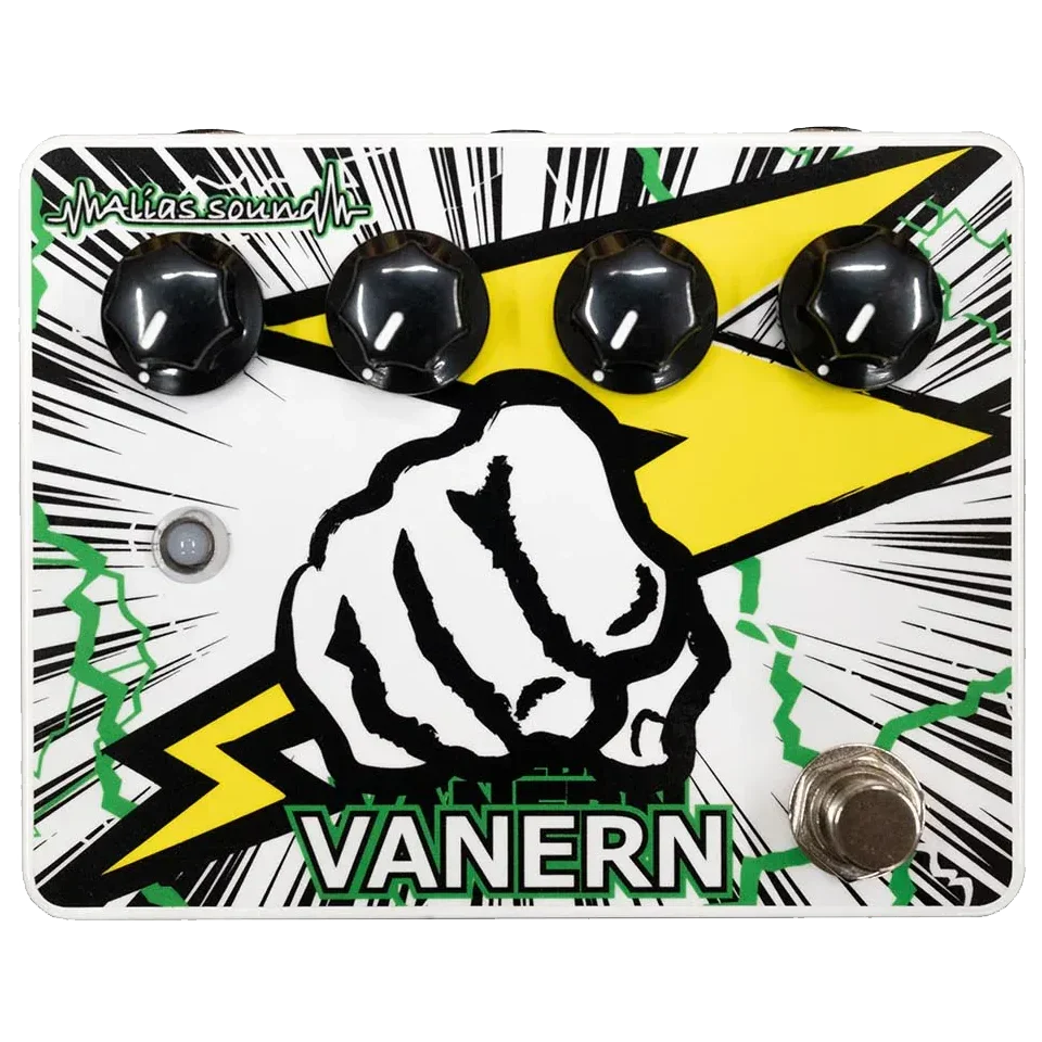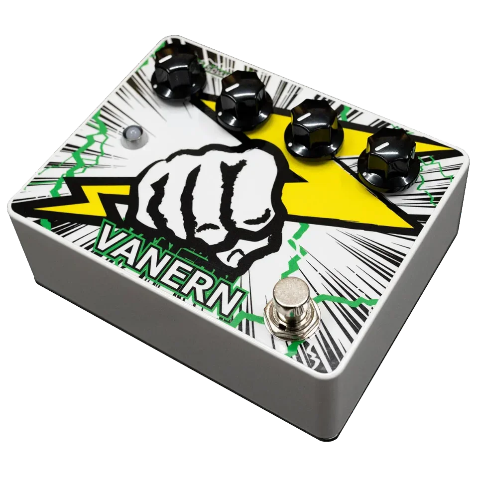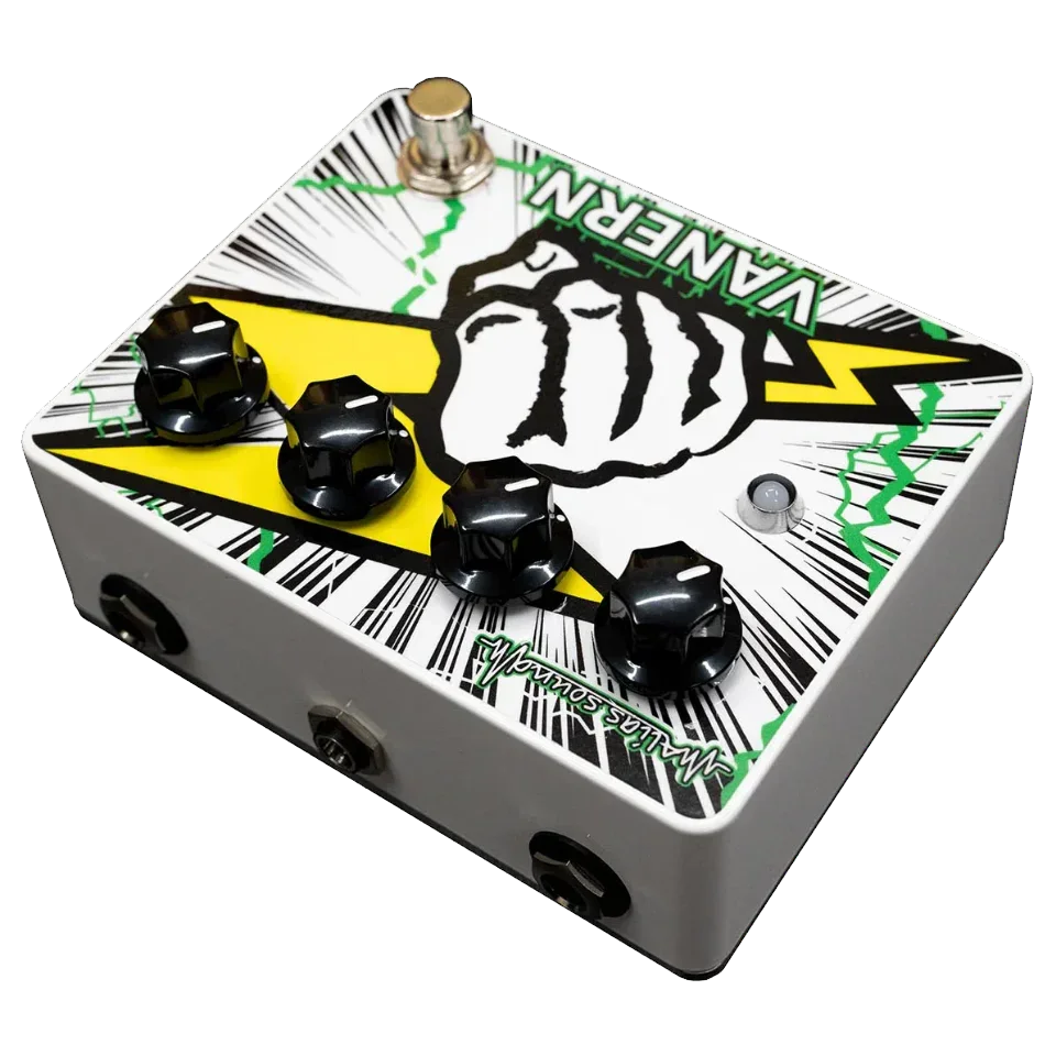 粒感があり濃密な歪みが特徴のVENERN。 真空管を思わせるような歪みに現代的なアレンジを加えたディストーションペダルです。 LOUDNESSを上げると歪みが増し12時の前と後ろでは歪みの質感が大きく変わり、上げ切って も音が潰れずアンサンブルでも埋もれないサウンドです。 LOOSEノブでアンプの年代を変えるような音質変化をさせることができ、LOOSEを絞るとタイトで ウォームな音に、LOOSEを開放すると巻弦は荒々しくなりプレーン弦はエッジなサウンドに変化 します。 全てオペアンプを使用した回路構成となっておりペダル内部で±15Vを生成し一般的なペダルの 3倍以上のヘッドルームを確保しています。 広いヘッドルームによりオペアンプによって歪んでしまうことを回避しています。 また幅広い電源電圧によって音の戻りが良く、深く歪んだ状態で強くピッキングして もレスポンス良く演奏することが可能です。