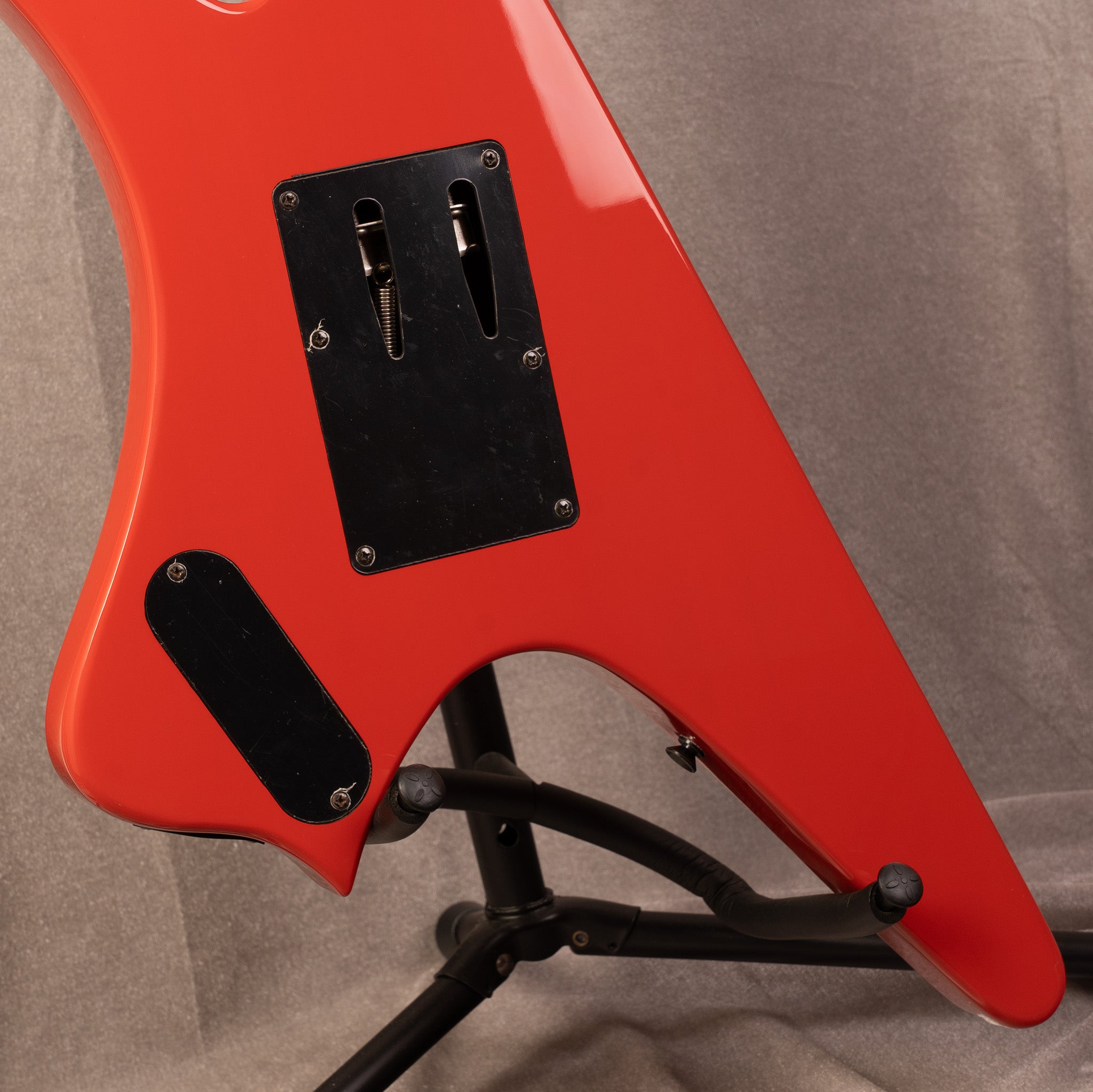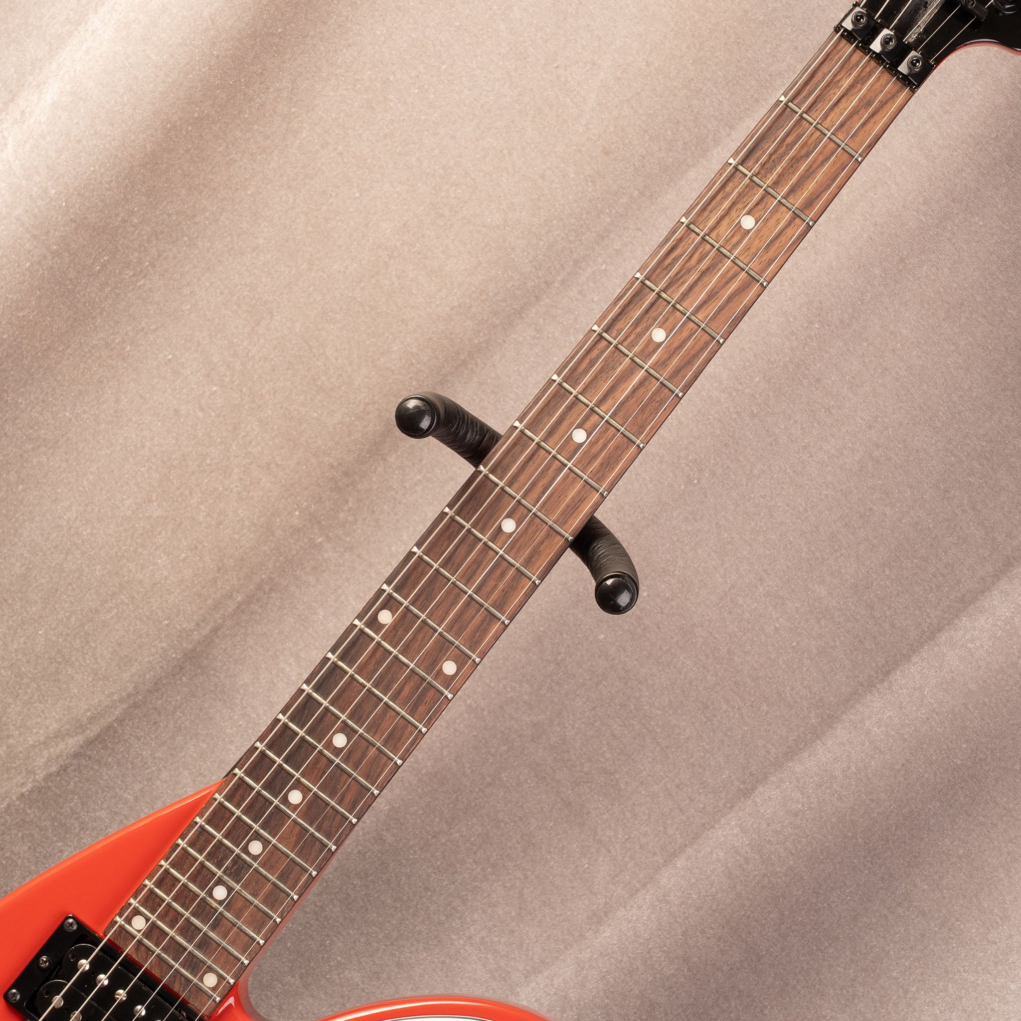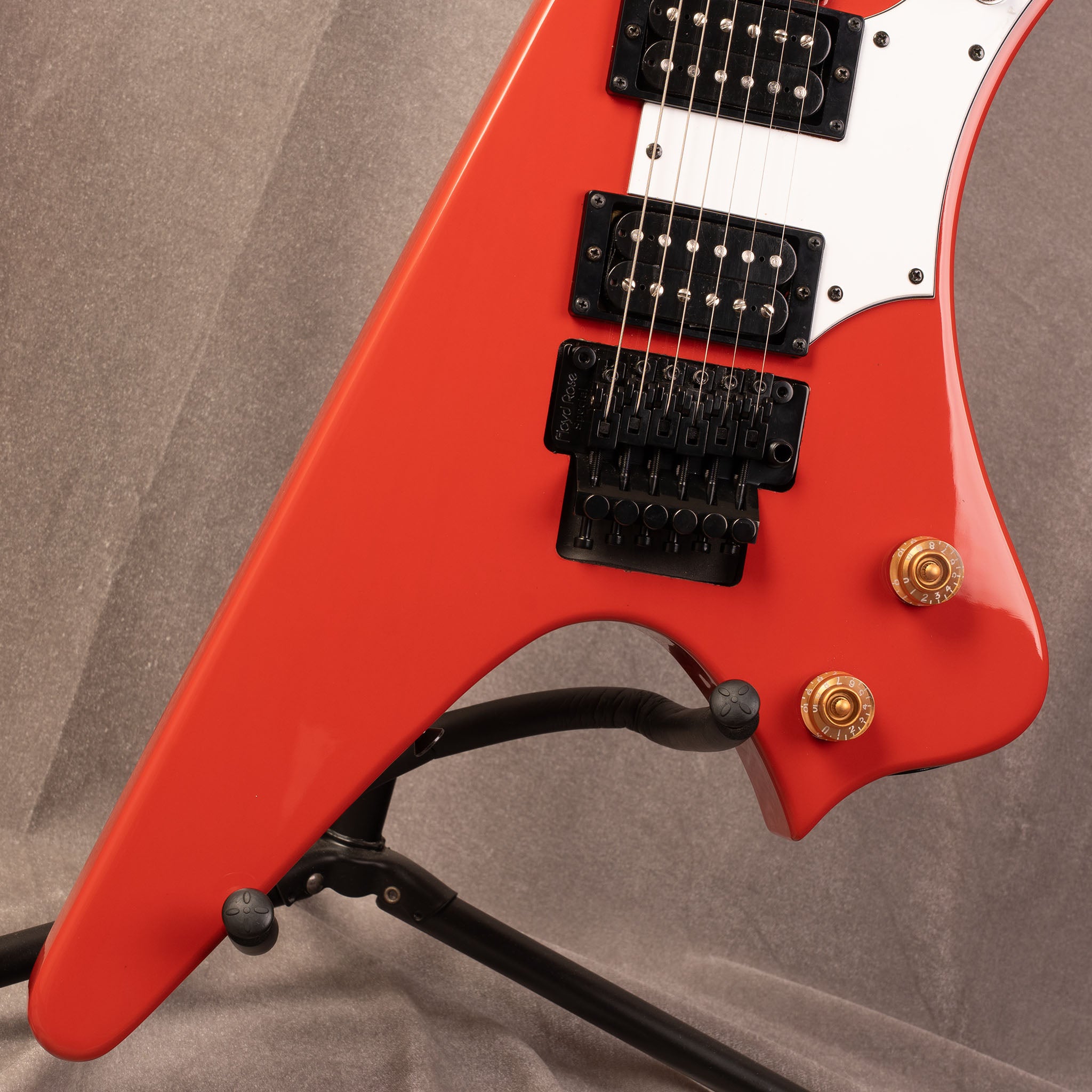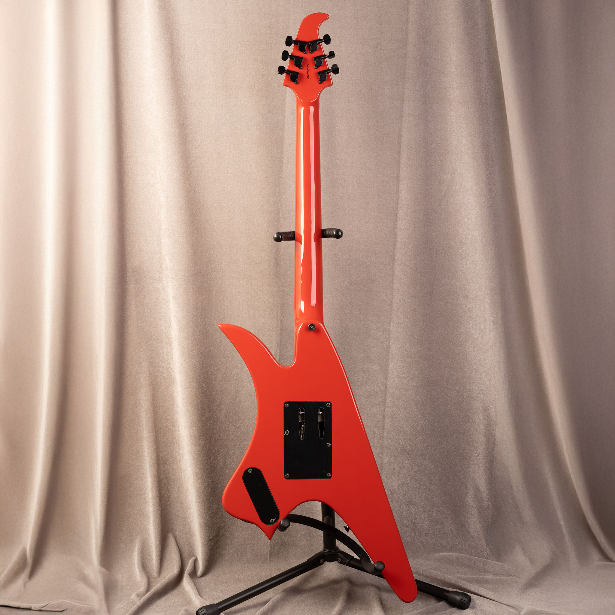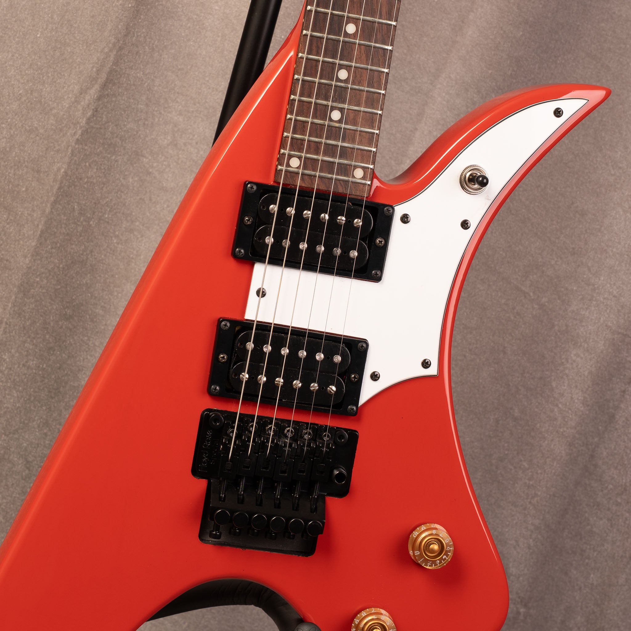 この独特なシェイプのギター「ICARUS」は圧倒的で派手な見た目とFloyd Roseブリッジによる多彩な表現力、座って弾いた際にも安定した演奏性を実現しました。サウンドと見た目、どちらも多彩なICARUSで是非あなたならではの演奏を魅せてください。