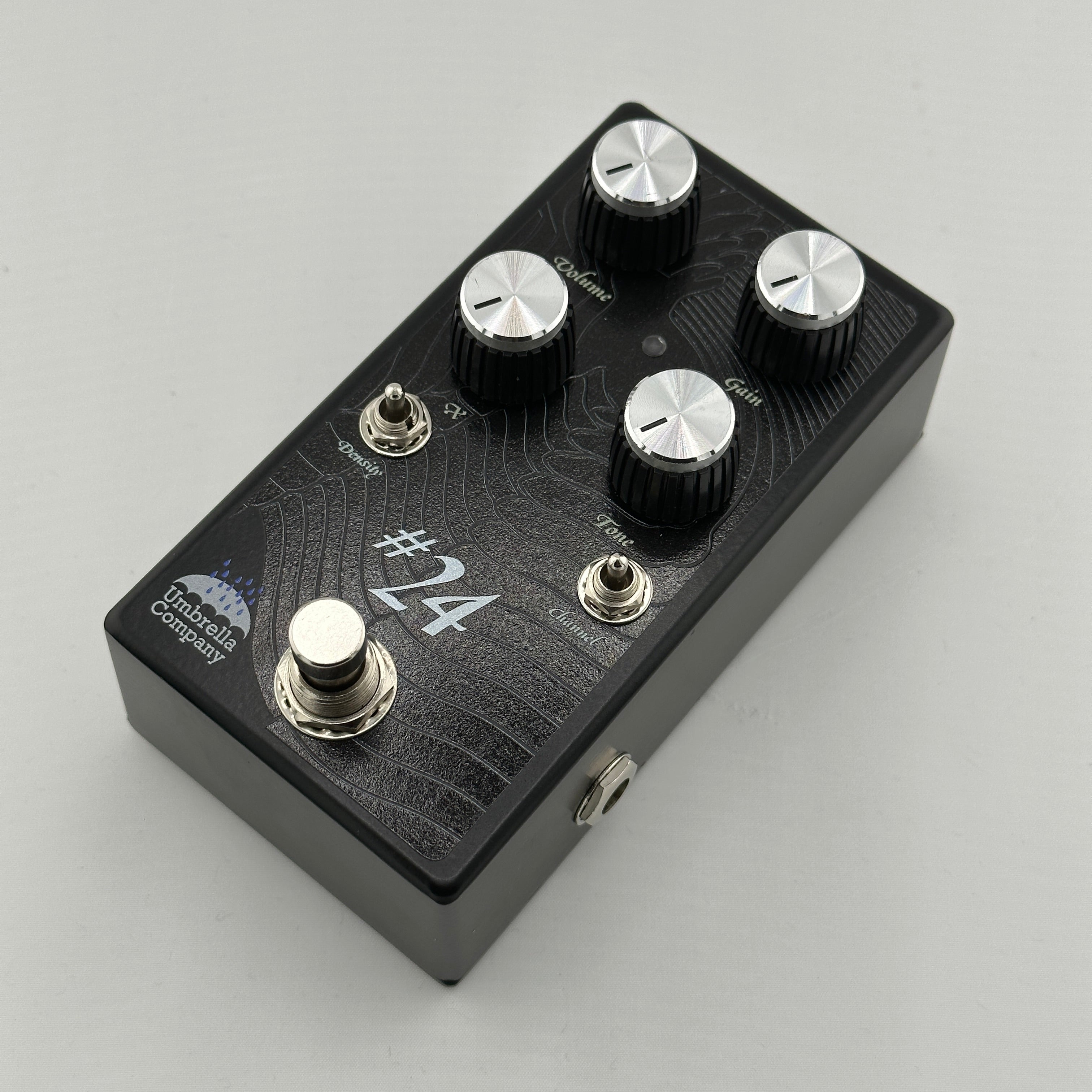 Umbrella Company “#24″はハードにドライブしたギターサウンドを徹底追及したディストーションペダルです。強力な電源回路から生成された信号で、フルスタックアンプを思わせる音圧感と、音速を超えるほどのスピーディなトーンを実現しました。