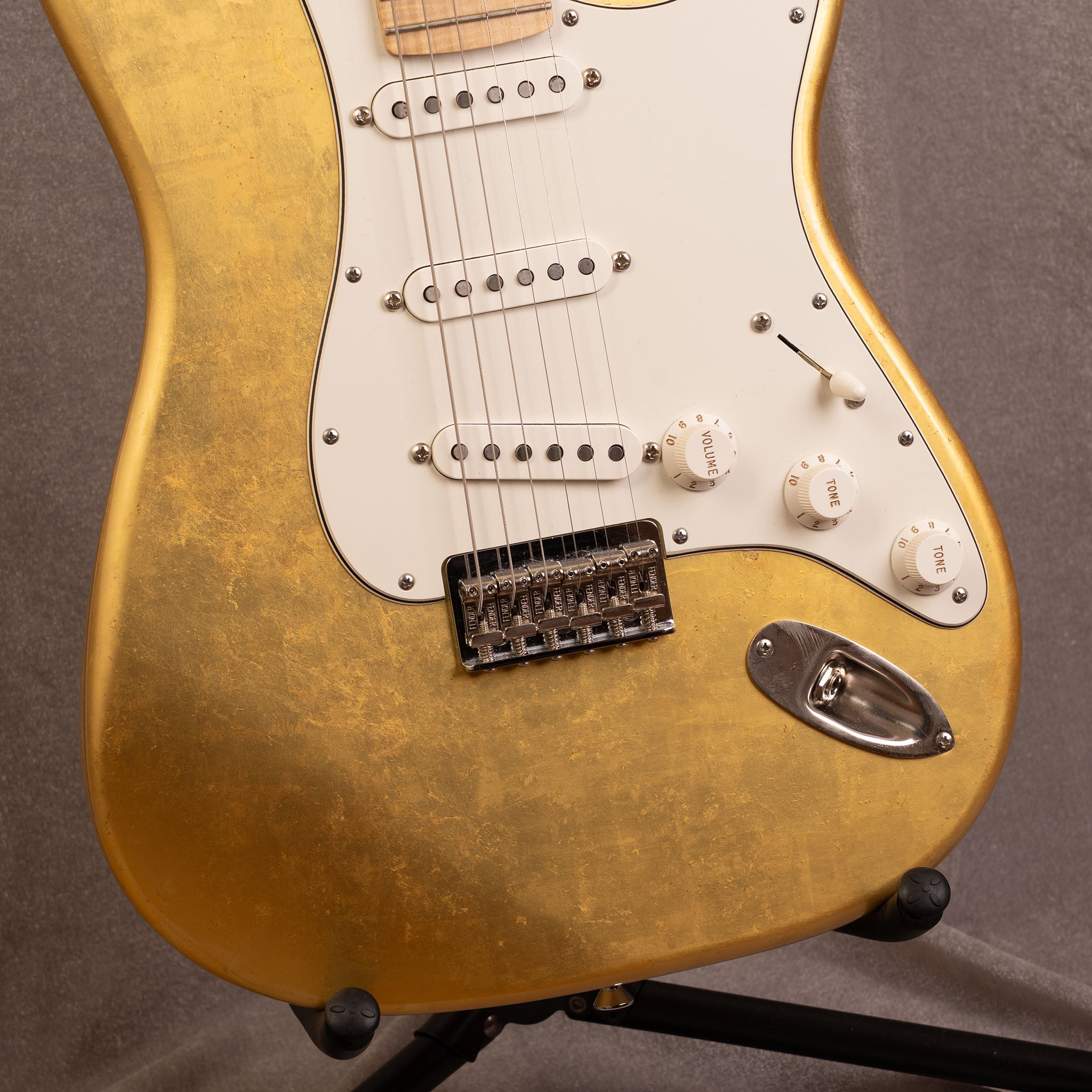 ハードテイル仕様のストラトシェイプにフレイムメイプルネック