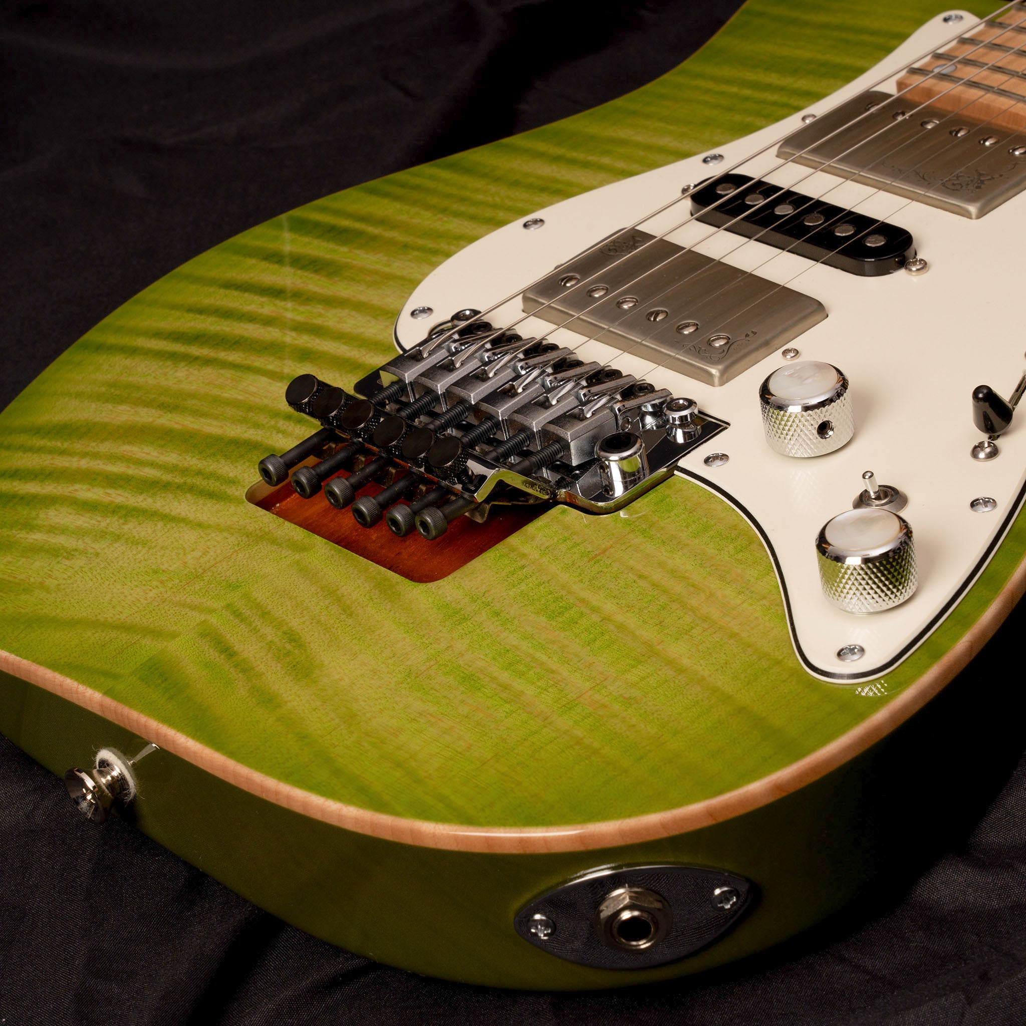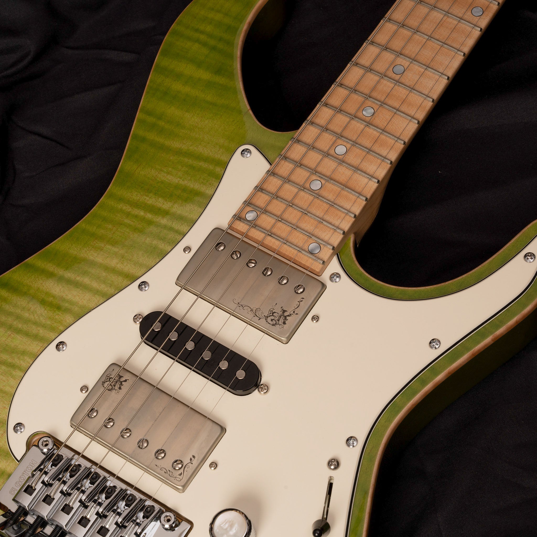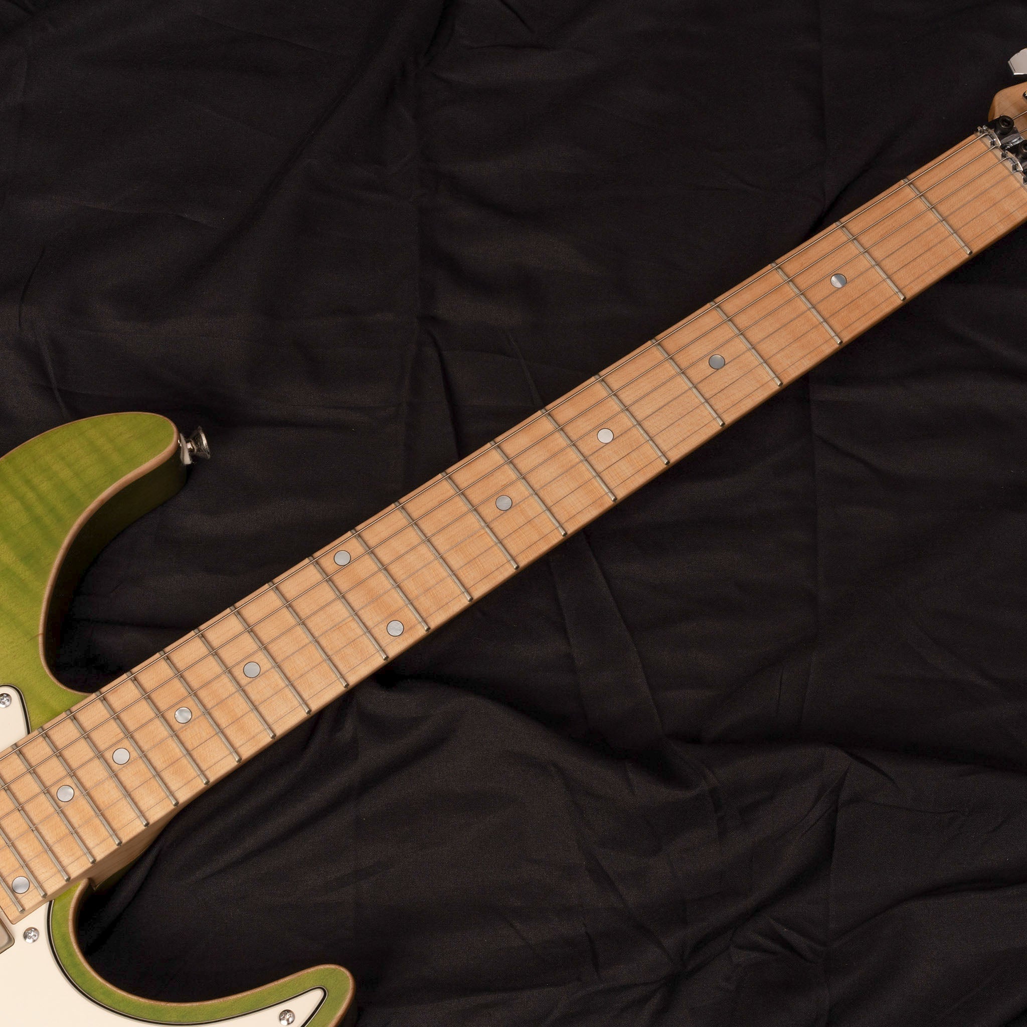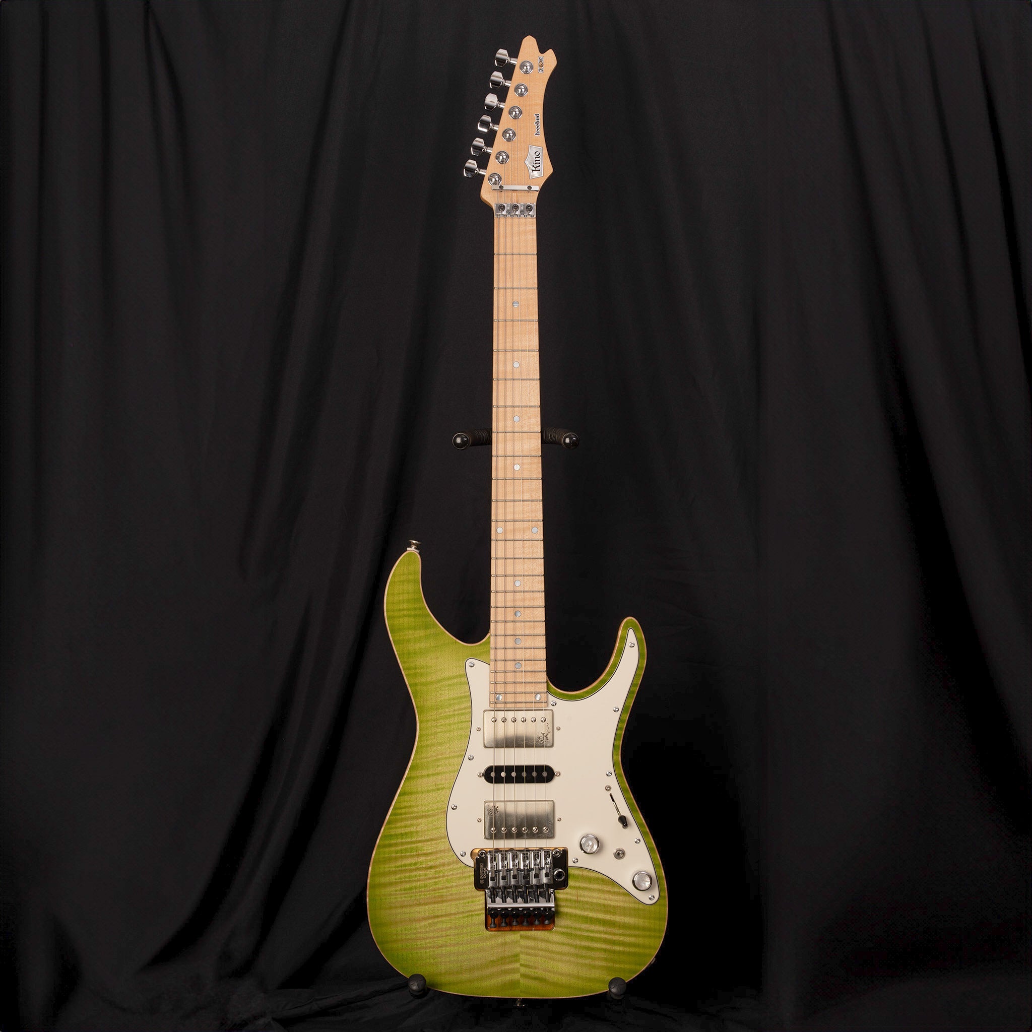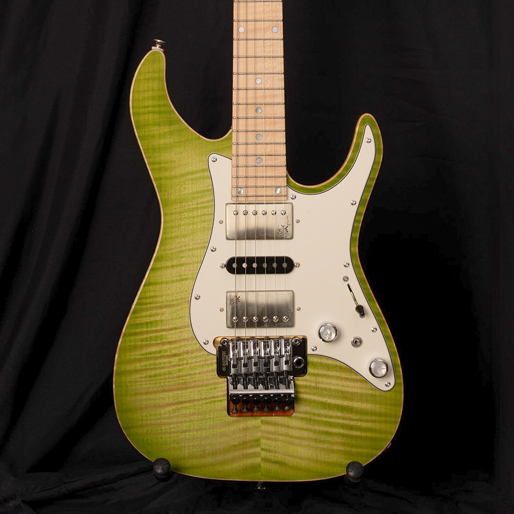 Body Top:Flame Maple Body Back : Mahogany Neck:FlameMaple Fingerboard:Flame Maple 24F Fingerboard Radius:400mmR Scale:648mm Nut:Oild Bone Nut Width:42mm Tuner:Gotoh SG381-07C MG-T Bridge:Gotoh GE-1996T Pickups:Euphoreal x kino Original Controls:Vol,Tone,5Way SW Mini SW(Coil-Tap) Weight : 3.5kg