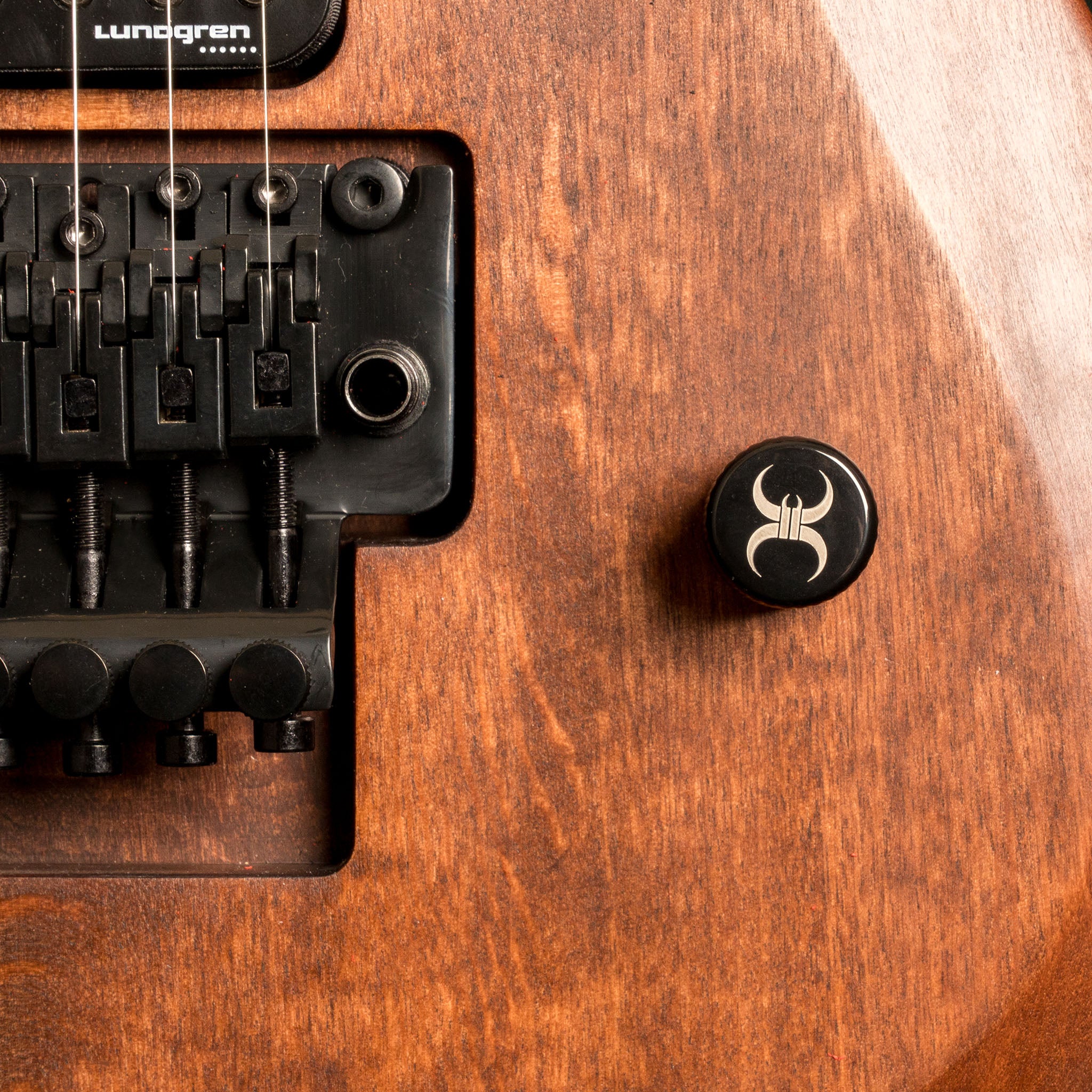 ブリッジには定番の「Black Heaven」。重低音でも濁らず、明瞭なトーンを維持。ドロップチューニングでも威力を発揮します。