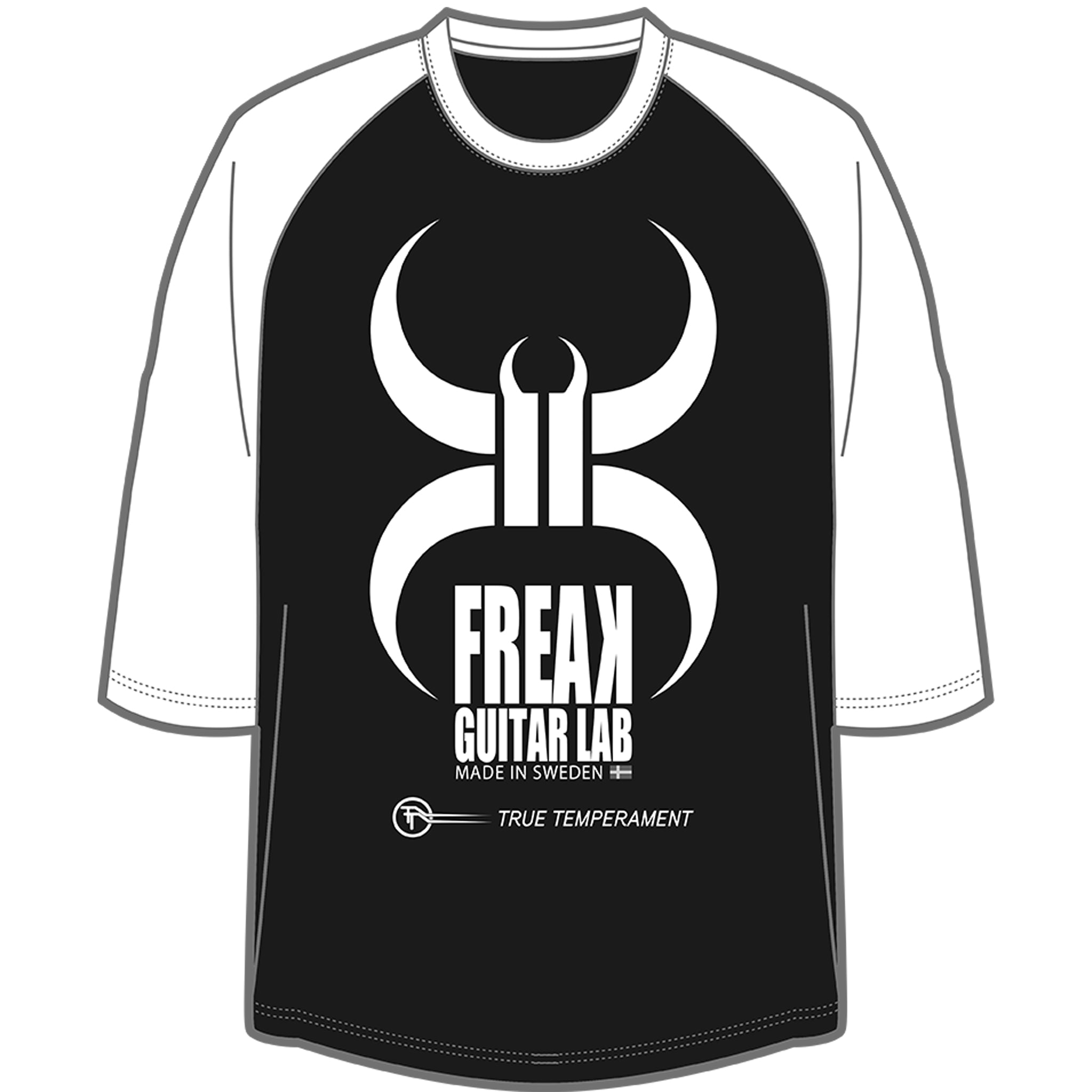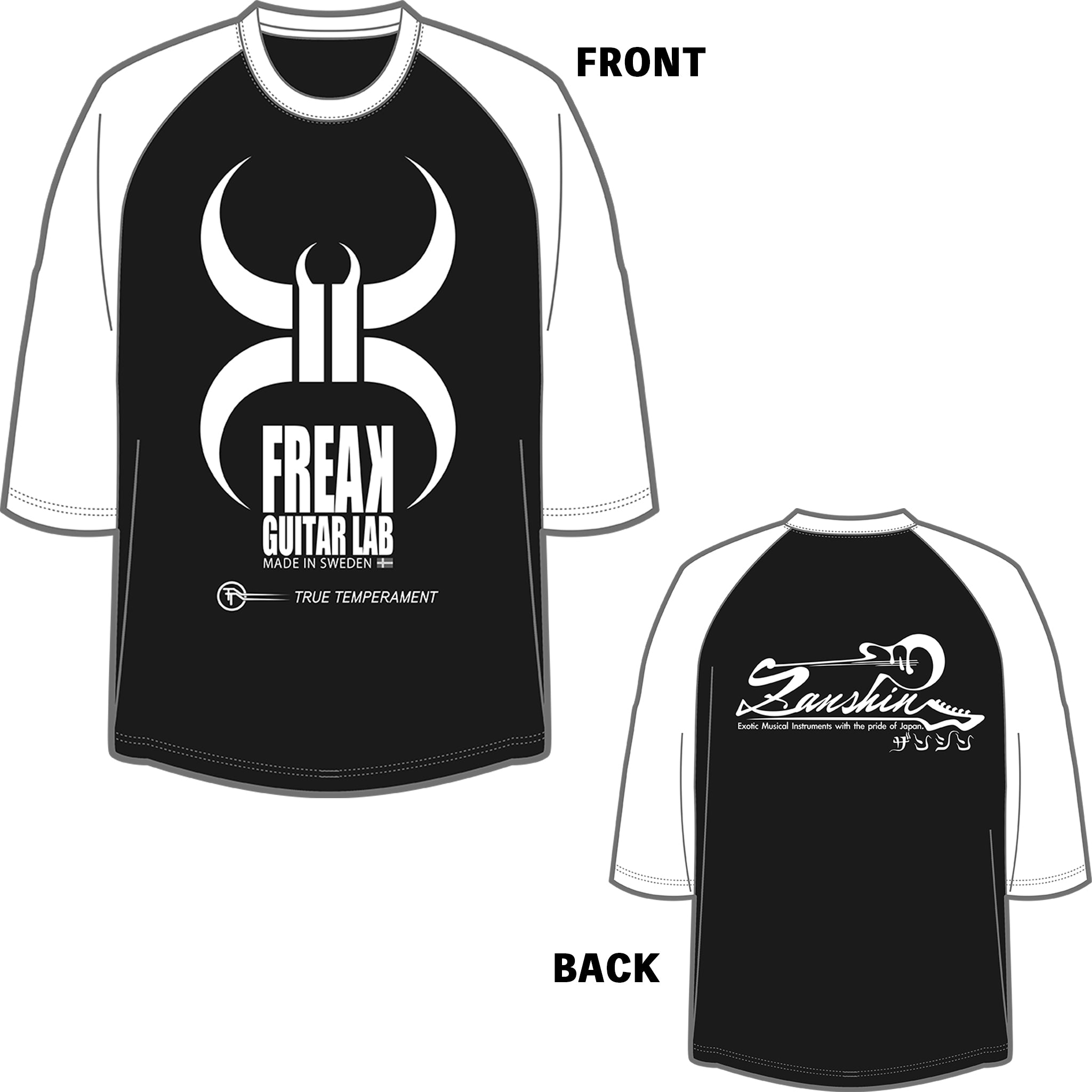 FRONTにFREAK GUITAR LABロゴのデザインをプリント、BACKにはZanshin Musical InstrumentsロゴをプリントしたTシャツ。