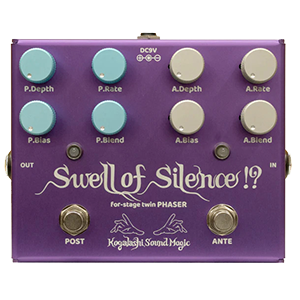 Swell of Silence !?は、深くうねるようなサウンドから浅くきめ細やかな表現まで可能な完全アナログ回路による4ステージのフェイザーです。