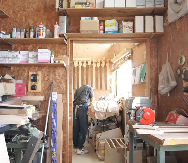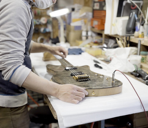 業界屈指のクラフトの腕と材を見分ける目を持つ師のもとで8年間修業し、 数多くの内外有名メーカーのGuitar、Bassの製造にかかわる。